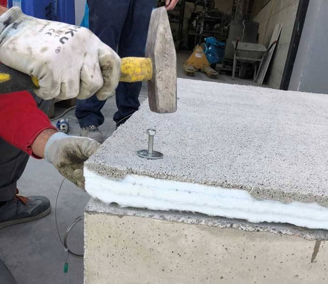 Ensayo de fijación mecánica del panel de protección pasiva contra el fuego sobre soporte de hormigón: verificación de la estabilidad y del anclaje del sistema de protección del refuerzo FRP. (© Edilteco)